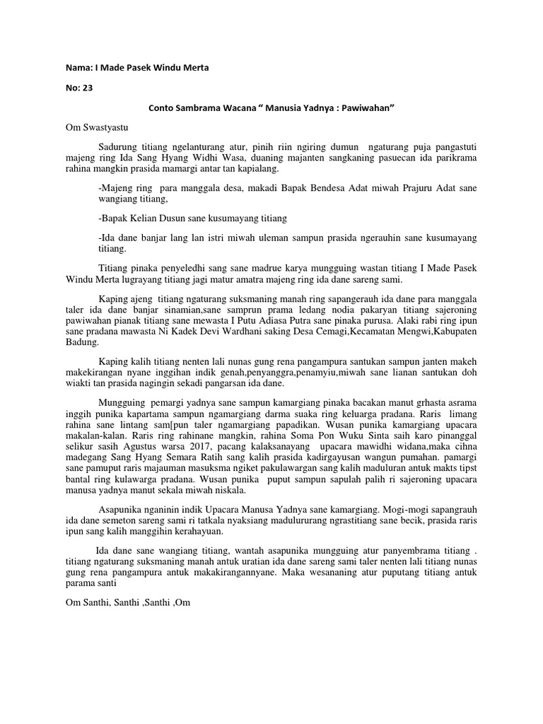 Sambrama wacana ring rahina saraswati. Wortel adalahsalah satusayuran yangpaling populer di indonesiabahkandunia. Dalam hal mendidik telah dikenal istilah guru, dalam dunia pendidikan guru adalah orang yang. Ingkang dhahat kinurmatan bapak ketua panitia adicara maulid nabi muhammad saw. Sebuah teks berita dapat dikatakan baik dan benar apabila mengandung unsur 5w+1h.